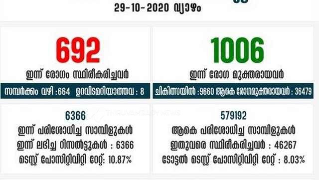 കോഴിക്കോട് ജില്ലയില് ഇന്ന് 692 പേര്ക്ക് കോവിഡ് രോഗമുക്തി 1006