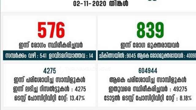 കോഴിക്കോട് ജില്ലയില് 576 പേര്ക്ക് കോവിഡ് രോഗമുക്തി 839