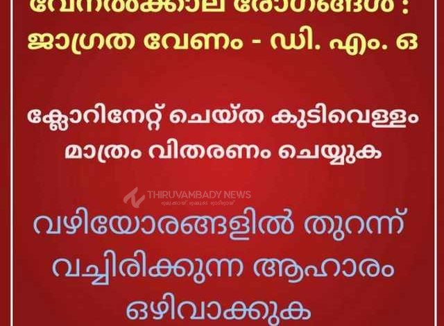 വേനല്ക്കാല രോഗങ്ങള് : ജാഗ്രത വേണം – ഡി. എം. ഒ
