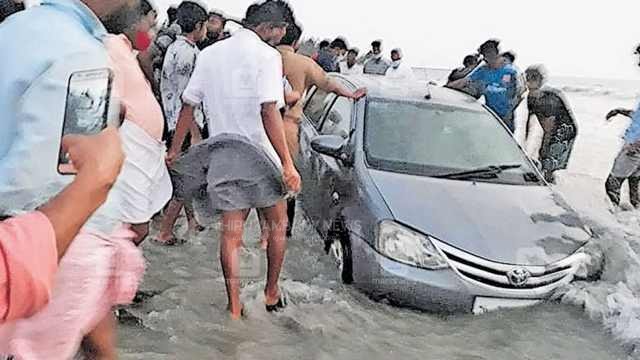ഓടിക്കൊണ്ടിരിക്കെ കാർ കടലിൽ താഴ്ന്നു; 2 മണിക്കൂർ പരിശ്രമം, ഒടുവിൽ…