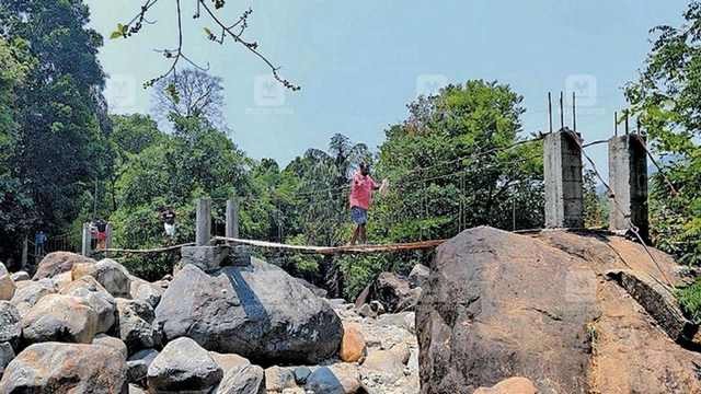 മറിപ്പുഴയിൽ ഇരുവഞ്ഞിപ്പുഴയ്ക്കു മുകളിൽ നിർമിച്ച തൂക്കുപാലം അപകടത്തിൽ
