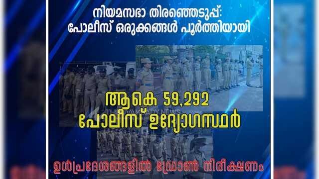 നിയമസഭാ തിരഞ്ഞെടുപ്പ്: പോലീസ് ഒരുക്കങ്ങള് പൂര്ത്തിയായി; ഉള്പ്രദേശങ്ങളില് ഡ്രോണ് നിരീക്ഷണം