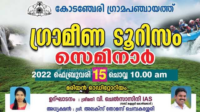 കോടഞ്ചേരിയിൽ ഗ്രാമീണ ടൂറിസം സെമിനാർ ഇന്ന് മരിയൻ ഓഡിറ്റോറിയത്തിൽ