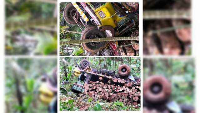 റബ്ബർ തടി കയറ്റി വന്ന ലോറി മറിഞ്ഞു