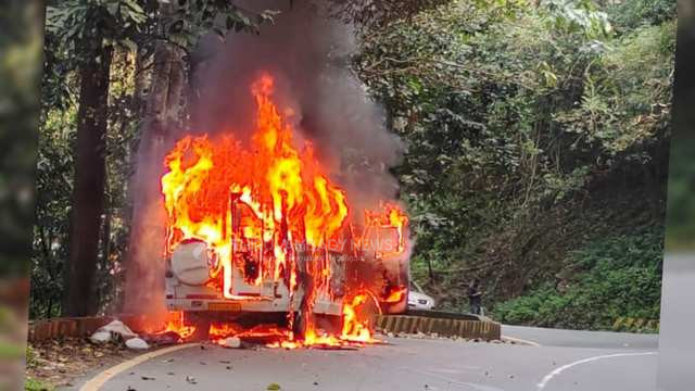 താമരശ്ശേരി ചുരത്തിൽ വാഹനത്തിന് തീപിടിച്ചു