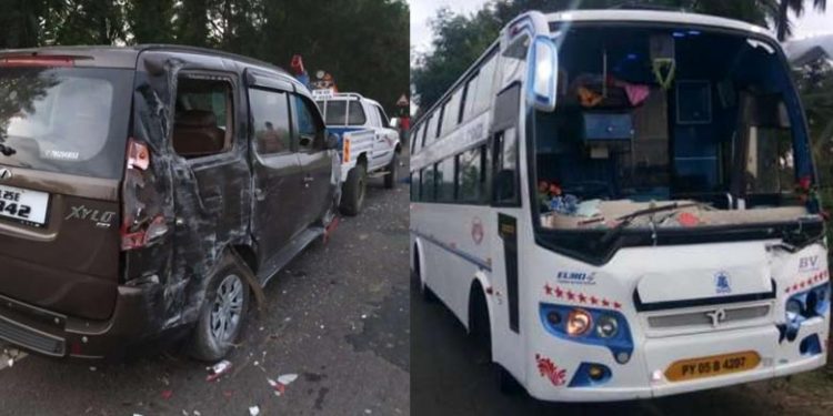 തീർത്ഥാടക സംഘത്തിന്റെ കാർ തകരാറായതിനെ തുടർന്ന് റോഡരികിൽ നിർത്തിയിരിക്കുകയായിരുന്നു. ഇതിനിടയിലാണ് ബസ് ഇടിച്ചത്. കേടായ വാഹനം നീക്കാൻ എത്തിയ റിക്കവറി വാഹനത്തിന്റെ ഡ്രൈവറാണ് മരിച്ച രാജശേഖരൻ. സംഭവസ്ഥലത്തുതന്നെ മൂന്നുപേരും മരിച്ചു.