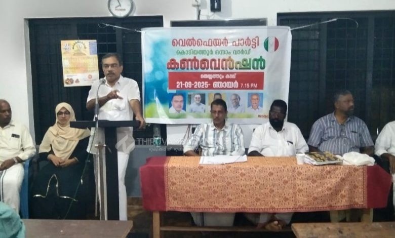 കൺവെൻഷൻ വെൽഫെയർ പാർട്ടി സംസ്ഥാന കമ്മിറ്റി അംഗം അസ്ലം ചെറുവാടി ഉദ്ഘാടനം ചെയ്തു. ജില്ലാ വൈസ് പ്രസിഡൻ്റ് ഷംസുദ്ദീൻ ചെറുവാടി മുഖ്യ പ്രഭാഷണം നടത്തി. മണ്ഡലം പ്രസിഡൻ്റ് ചന്ദ്രൻ കല്ലുരുട്ടി ഉപഹാര സമർപ്പണം നിർവ്വഹിച്ചു. പഞ്ചായത്ത് പ്രസിഡൻ്റ് എം.എ ഹകീം മാസ്റ്റർ, സെക്രട്ടറി ഇ.എൻ. നദീറ, വാർഡ് മെമ്പർ ടി.കെ. അബൂബക്കർ മാസ്റ്റർ, എ.പി. നസീം, ജ്യോതിബസു കാരക്കുറ്റി എന്നിവർ സംസാരിച്ചു. വാർഡ് പ്രസിഡൻ്റ് കെ. അബ്ദുല്ല മാസ്റ്റർ അധ്യക്ഷത വഹിച്ചു. റഫീഖ് കുറ്റിയോട്ട് സ്വാഗതവും മുംതാസ് കൊളായിൽ നന്ദിയും പറഞ്ഞു