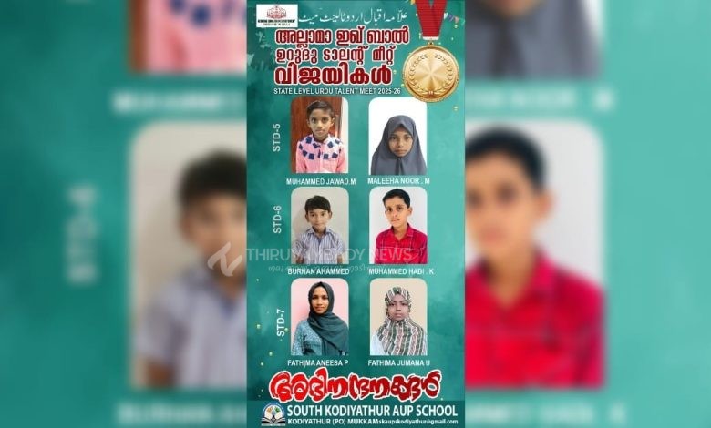 കൊടിയത്തൂർ: കേരള സംസ്ഥാന പൊതുവിദ്യാഭ്യാസ വകുപ്പ് ഉറുദു ഒന്നാം ഭാഷയായി പഠിക്കുന്ന വിദ്യാർത്ഥികൾക്കായി നടത്തിവരുന്ന അല്ലാമ ഇഖ്ബാൽ ഉറുദു ടാലൻ്റ് മീറ്റിൽ മികവിൻ തിളക്കവുമായി സൗത്ത് കൊടിയത്തൂർ എ യു പി സ്കൂൾ കൂട്ടുകാർ. യു പി തലത്തിൽ അഞ്ചിലും ആറിലും ഏഴിലും മത്സരിച്ച ആറ് വിദ്യാർത്ഥികളും മികച്ച വിജയം കരസ്ഥമാക്കി.