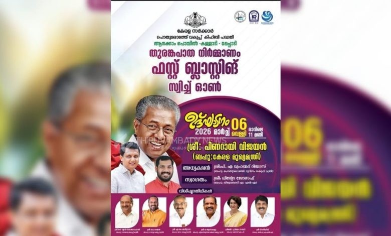 ആനക്കാംപൊയിൽ-കള്ളാടി-മേപ്പാടി തുരങ്കപാത നിർമിക്കുന്നതിന്റെ ഭാഗമായി ആദ്യ പാറപൊട്ടിക്കൽ നാളെ മുഖ്യമന്ത്രി പിണറായി വിജയൻ ഉദ്ഘാടനം ചെയ്യും