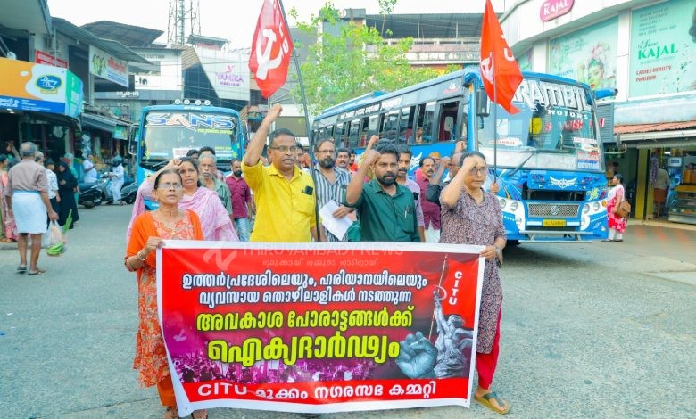 മുക്കം: ഹരിയാനയിൽ തൊഴിലാളികൾ നടത്തിവരുന്ന സമരത്തിന് ഐക്യദാർഢ്യം പ്രഖ്യാപിച്ച് മുക്കം നഗരസഭ സി.ഐ.ടി.യു കമ്മിറ്റിയുടെ നേതൃത്വത്തിൽ പ്രതിഷേധ പ്രകടനവും പൊതുയോഗവും നടത്തി. മുക്കം ടൗണിൽ നടന്ന വിശദീകരണ പൊതുയോഗം സി.ഐ.ടി.യു ഏരിയ പ്രസിഡന്റ് കെ.ടി ബിനു ഉദ്ഘാടനം ചെയ്തു.