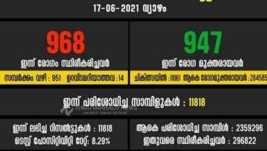 കോഴിക്കോട് ജില്ലയില് 968 പേര്ക്ക് കോവിഡ് രോഗമുക്തി 947, ടി.പി.ആര് 8.29%